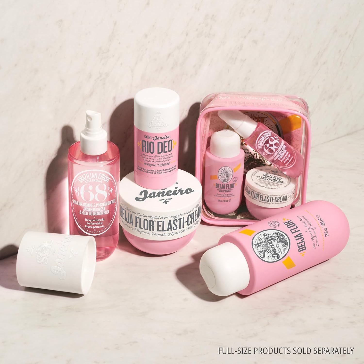Your travel-friendly routine for visibly smoother skin. Start by cleansing with Beija Flor Body Wash, then smooth on collagen-boosting* Beija Flor Elasti-Cream. Finish with the bright scent of Cheirosa 68 Perfume Mist.